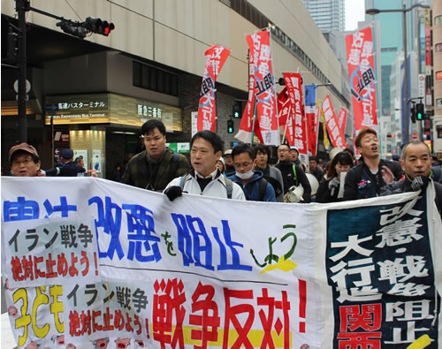 イラン戦争絶対とめる! 大行進・関西が大阪で緊急デモ