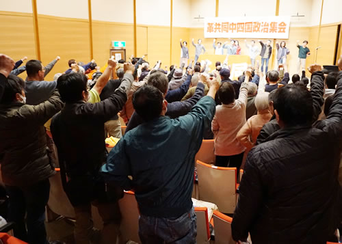 1月19日、「2020年改憲阻止からプロレタリア革命へ!〜革共同の新しい挑戦〜」と題し、革共同中四国政治集会を広島市で開催しました。100人が参加し、『前進』読者、革共同支持者に、この時代に通用する労働者党建設に向け共に闘おうと訴える熱い集会となりました。