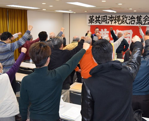 1月19日、革共同沖縄政治集会を那覇市内で開催し、安倍政権を打倒し、2020年の改憲阻止決戦に突入することを誓い合いました。集会では、国鉄闘争全国運動・沖縄をはじめ多くの団体からの連帯あいさつも行われました。