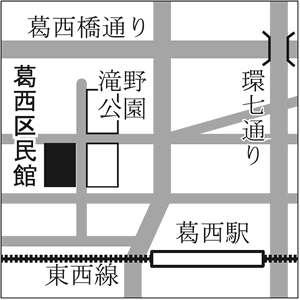 東京・葛西区民館ホール(東京都江戸川区中葛西3―10―1、東京メトロ東西線「葛西駅」徒歩5分)