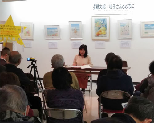 会場は横浜駅のすぐ近くで、連日様々なイベントや会合が行われる県民の活動の拠点です。広い1階展示室に星野さんの絵画47点、生前の写真を含む資料などを展示し、DVDを上映。さらに、三里塚の市東孝雄さんの畑に植わる〈星の木〉と〈星野さんの部屋〉を再現するなどのワークショップも試みました。
