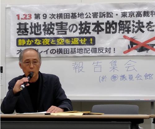 この訴訟は、基地周辺住民が騒音被害の賠償や米軍機と自衛隊機の夜間・早朝の飛行差し止めを国に求めるものです。判決は、住民の最大の願いである差し止めを認めず、将来分の被害への賠償も認めない「型通り」の反動判決でした。同種の訴訟は全国で40年以上闘われ、40回以上の判決が出ています。