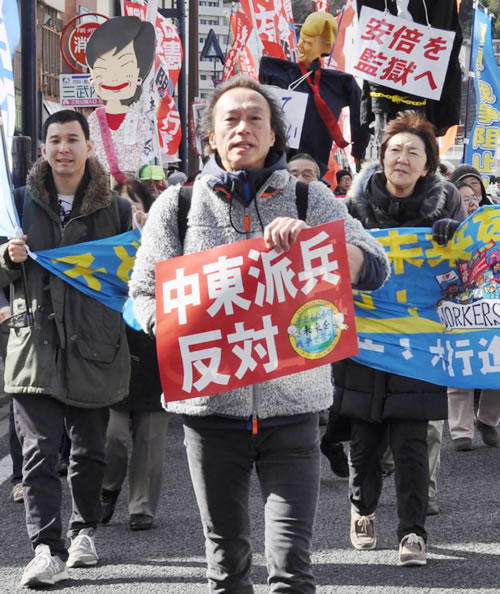 2月2日に中東海域へ派遣された海上自衛隊の護衛艦「たかなみ」の母港がある横須賀で、1、2日の二日にわたり抗議行動が行われた(前号で既報)。1日の横須賀市内デモを主催した改憲・戦争阻止!大行進神奈川の船木明貴さん(元中学校教員、横須賀市在住)にお話をうかがった。(編集局)