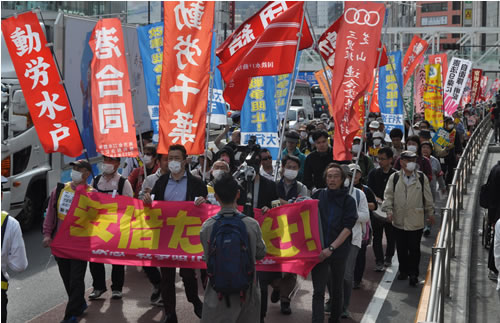 「改憲・戦争絶対反対!」「オリンピックやめろ!」——改憲・戦争阻止!大行進結成から2周年を迎え、3月22日に「アベ倒せ!新宿デモ」が打ち抜かれた。自粛ムードをうち破って500人を超えるデモとなった。デモに先立つ新宿駅南口での大演説会では、青年・学生を先頭に次々と安倍政権への怒りのアピールが発せられた。(詳報次号)