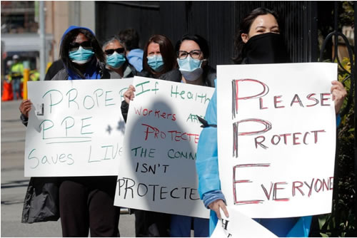 ある都立病院の看護師は、「コロナに関わる医療体制は専門的で、誰でもできるわけではない。重症者には1人に対し何人ものICU(集中治療室)経験者の看護師を他の病棟から集めて配置する。したがって他の病棟を閉めざるを得なくなる。看護師も労働者として自分の生活のために働いているのに、死の危険にさらされながらマスクや消毒液がないなど、自分たちは『捨て駒』かと考えてしまう」と告発している。