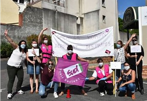 北東部のマルヌ県でコリアンが経営する高齢者介護施設の労働者は、25日正午から午後3時まで持ち場を離れ、施設前で集会を開いた。コリアンの経営陣は当初585ユーロを支払うと言っていたが、その日の終わりには要求どおり1500ユーロ支払うと回答した。コリアンは全国7500の高齢者介護施設のうち308を運営する大手だ。1500ユーロが全体に波及する可能性が高まった。