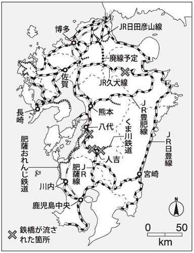 この豪雨でJR九州でも17路線345カ所で被害が生じた。肥薩(ひさつ)線は2本の鉄橋が流失、久大(きゅうだい)線は1本の鉄橋が流出した他、複数の鉄橋で橋脚がゆがんだ。線路への土砂の流入、地盤の流出なども多数起き、被害の大きさは17年の豪雨を超える。久大線や肥薩線は、JR九州が観光客を誘致しようと話題作りに努めてきた路線だ。しかし、赤字であることに変わりはない。日田彦山線の廃線と同じことが繰り返されかねない。