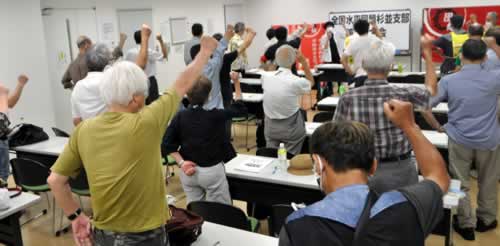 9月4日、全国水平同盟杉並支部第8回大会が東京・杉並区内で開催された(写真)。全国水平同盟の平沼和典事務局長が講演し、「住宅からの追い出しとムラの更地化反対闘争」「労組建設」「狭山闘争」は、改憲・戦争情勢をひっくり返す、革命を求める闘いだと語った。