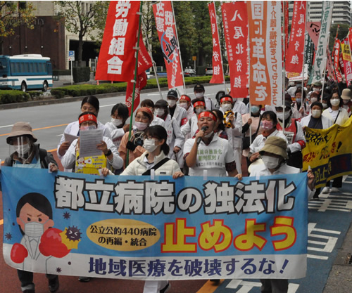 多摩連帯ユニオン根岸病院分会の徳永健生分会長が、医療を金もうけの道具に変える都立・公社14病院の独立行政法人化を絶対に阻止しようと訴えた。