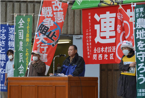 三里塚芝山連合空港反対同盟の市東孝雄さんは、飛行回数が大幅に減っているのに、市東さんの農地を強奪しようと狙う成田空港会社に怒りをぶつけた。