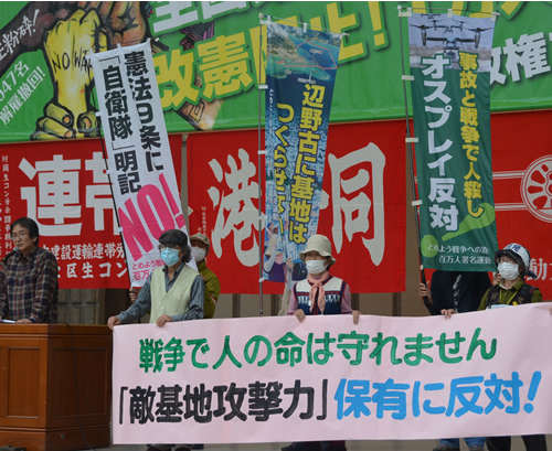 とめよう戦争への道!百万人署名運動・東京北部連絡会代表の五條敦さんは、7月に逝去した西川重則さんの遺志を継ぎ、広範な人々と連帯して、敵基地攻撃能力の保有をはじめとした菅政権の戦争政策と対決する決意を語った。