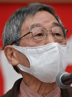 改憲・戦争阻止!大行進神奈川の野本三吉さんが、竹中平蔵をブレーンに据えベーシックインカムで社会保障を解体しようとたくらむ菅政権との闘いを訴えた。