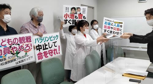 (写真 パラ中止と都立病院独法化とりやめを求め、医療労働者を先頭に都庁へ申し入れ【8月17日】)