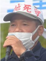 ひときわ大きな声援に迎えられて、沖縄大学全学自治会委員長で全学連副委員長の赤嶺知晃さんが「反対同盟と連帯し、農地死守・空港粉砕の実力闘争を貫く。この中に社会を変える力がある」と訴えた。