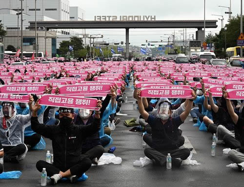 現代製鉄では、金属労組所属の非正規職支会が8月から唐津(タンジン)製鉄所で工場内占拠・籠城(ろうじょう)闘争に入った。不法派遣が暴かれた現代製鉄が非正規職労働者の直接雇用を拒否し、現代自動車資本と結託して設立した子会社への採用でごまかそうとしたことへの怒りの爆発だ。しかも採用条件として、今後は労働者としての権利を主張せず裁判にも一切訴えないという奴隷契約書への署名を求めている。労働組合の存在も認めず、全労働者を完全な無権利状態に突き落とす攻撃だ。