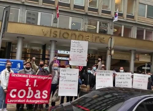 10・20民主労総ゼネスト当日、東京・サンフランシスコ・ミラノで労働者が連帯行動を行った。