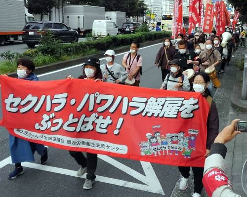 10月24日、大阪ドーンセンターにおいて関西労働組合交流センターと婦人民主クラブ全国協議会関西ブロックの呼びかけによる、「セクハラ・パワハラ解雇をぶっとばせ!集会」を開催しました。中国侵略戦争が切迫する中、今後、差別分断攻撃はますます強められていきます。「戦争反対」で労働者が団結しないように、あらゆる差別を使って労働者を分断しているのです。その一つがセクハラ・パワハラです。