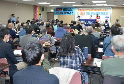 旭非正規職支会支援共闘会議の清水彰二事務局長は、「旭支会の支援連帯は、同時に日本での非正規職撤廃の闘いをつくり出す闘いだ」と訴えた。外登法・入管法と民族差別を撃つ全国実行委員会の鎌田由子さんは「入管法・入管体制を粉砕しよう」とスリランカ人女性ウィシュマさん虐殺を徹底弾劾し、「台湾有事」=中国侵略戦争を想定した軍備増強と沖縄の戦略拠点化を狙う岸田政権を絶対に許さず、11・7集会に労働者の怒りを結集しようとアピールした。