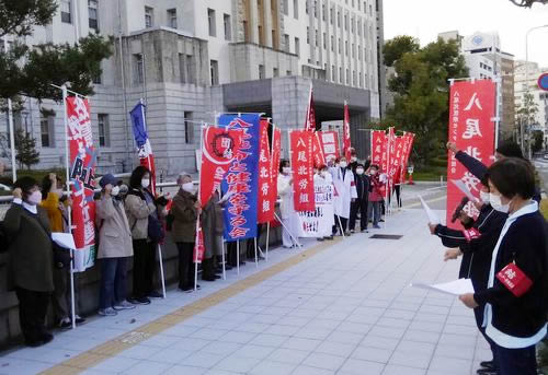 10月27日、八尾北医療センター労働組合や高槻医療福祉労働組合などの医療関係者でつくる地域医療交流会の仲間が、大阪府に対して「遺伝子ワクチンではなく公的医療の拡充を!新型コロナウイルス感染症に係る申入書2」を提出しました。4月21日に続いて2回目となる提出行動に、50人を超える仲間が集まりました。