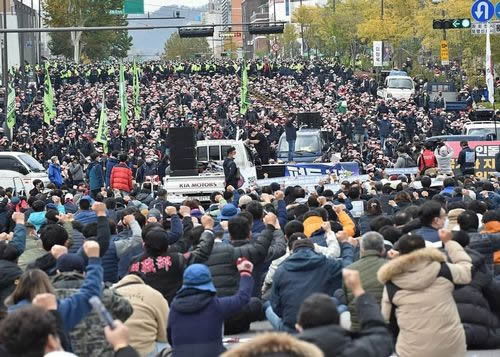 民主労総を先頭とする韓国の労働者民衆は、大統領選を通じた政権交代ではなく、労働者自身の闘いによる体制交代こそが必要だと訴え、全力で職場での組織化に打って出ている。日本でも構図は全く同じだ。この闘いに連帯し続こう!