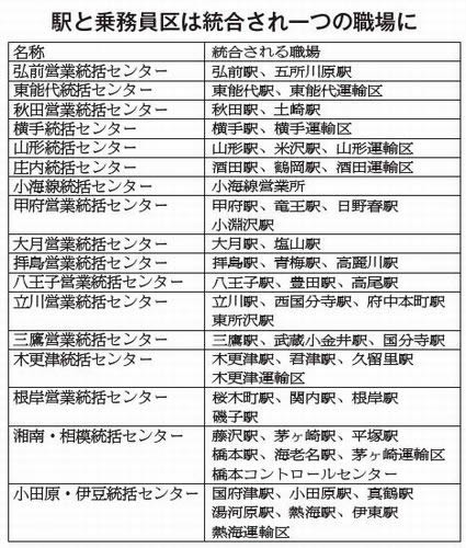 その具体化として、10月末からJR東日本は各支社ごとに「統括センター」「営業統括センター」を新設するという提案を次々と出している(表)。