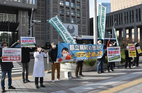 東京都議会第4回定例会が開会した11月30日、労組交流センター医療福祉部会などが都立病院の地方独立行政法人化阻止を訴えて都議会行動を行った。「都立病院条例の廃止に反対!」を明記した第2弾の署名もスタートし、昼休みの1時間半で50筆超が集まった。同条例廃止の議案は今議会には提出されていないが、水面下では独法化に向けた動きが進行している。運動をいっそう拡大し、絶対に阻もう。