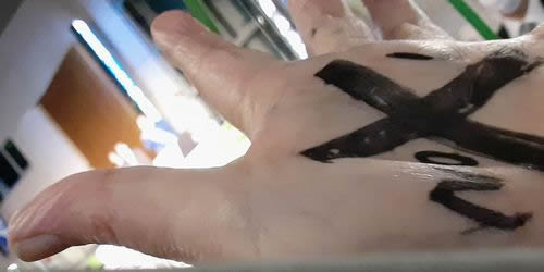 しかし、福島の怒りを抑えつけることはできません。甲状腺がんの手術を受けた青年が実名で検査縮小に抗議しました。また衆院選で福島駅前に現れた安倍晋三を、若い母親が両手に「NO×」と書いて弾劾。その決起に鼓舞された椎名さんも続き、四つの手のひらの反旗が翻りました。感動的です。