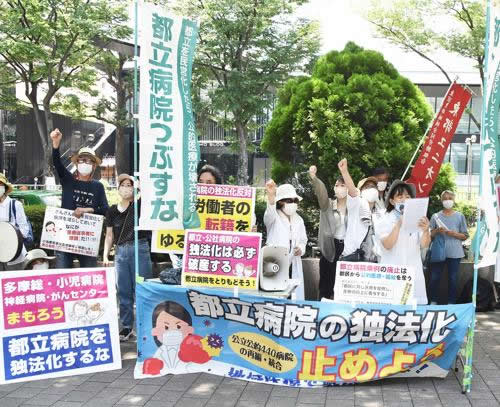 都立病院独法化反対の闘いは、路線的に闘いぬいたことで独法化に負けない闘争の永続化と地域拠点形成の確かな展望を切り開いている。2年にわたる「都立病院をつぶすな!」署名運動は、7月1日までに8回に及ぶ都庁申し入れ行動を行い、総計1万7805筆の署名提出を実現。あわせて都庁包囲デモと都立病院近隣での集会・デモを数波にわたりかちとってきた。20年7月に千葉県の船橋二和病院労組がコロナ下の医療破壊に対して「医療を社会保障として取り戻す」を掲げストライキで闘ったことから学んだ教訓は大きい。職場における資本との非和解的闘いと一体で「都立病院つぶすな」と地域で訴え、署名運動の広がりとともに、労働組合と地域住民、患者・家族との団結を形成・拡大してきた。