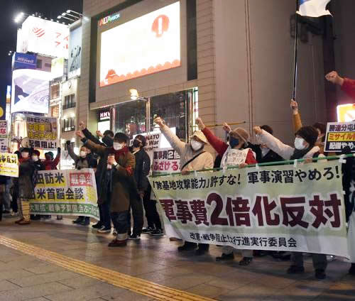 13日に行われた日米首脳会談では、日本が敵基地攻撃能力の保有と防衛費の大幅増額を決めたことに対して、バイデンが全面的な支持を表明した。そして日米共同声明で「米国と日本には単独および共同での能力強化が求められている」と主張し、「日本の反撃能力(敵基地攻撃能力)およびその他の能力の開発、効果的な運用」について日米協力を一層強化することを確認した。