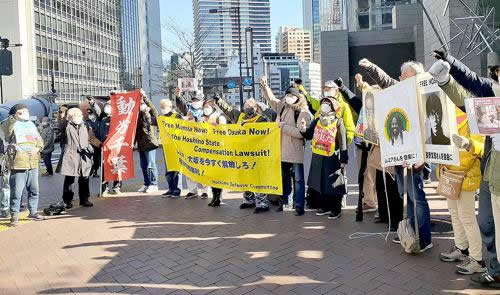 2月16日、無実の政治犯ムミア・アブ=ジャマル解放を求める世界統一行動として星野全国再審連絡会議と大坂正明さん救援会、動労千葉が、アメリカ大使館行動を30人で行った。