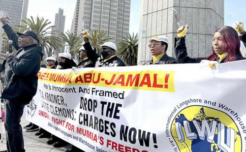 ムミア解放へ米大使館に抗議 米ILWUなどと世界統一行動