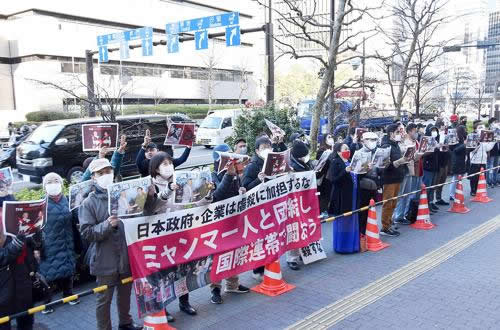 2月22日午後、在日ミャンマー人コミュニティーと共にミャンマー連帯行動実行委員会は、東京・赤坂にある日本財団への抗議行動を闘った。