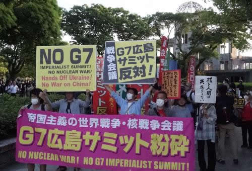 5月18日の日米首脳会談、19~21日のG7広島サミット開催に反対し、8・6ヒロシマ大行動が17日、多くの外国の記者が詰めかける中、原爆ドーム前で会見を開き、被爆者を先頭に帝国主義強盗の核戦争会議に対する怒りの声を上げた。