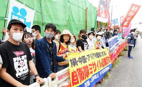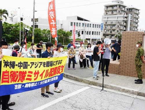 その後、自衛隊那覇駐屯地に移動し、①南西諸島のミサイル基地化の即時中止、②陸上自衛隊第15旅団の師団化反対、③自衛隊は侵略の銃をとるな、と訴える抗議の申し入れをした。