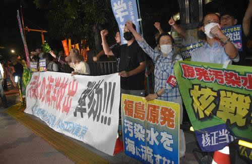 24日、原発汚染水放出を強行した岸田政権と東電に対して、東京でもただちに怒りの抗議行動が取り組まれた。千代田区内幸町の東電本社前には午前中から多くの人々が集まり、放出が開始された午後1時には400人が怒りのシュプレヒコールを上げ、今後も放出を中止させるまで声を上げ闘い続けることを誓った。