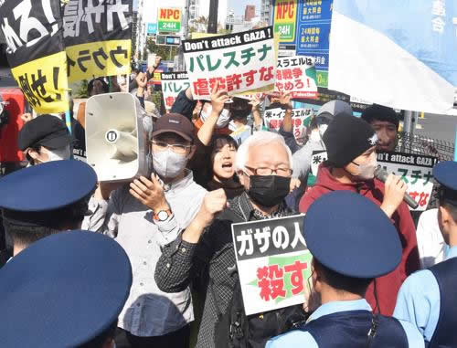 地上侵攻弾劾し緊急行動 イスラエル大使館に実力抗議