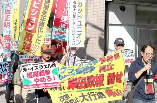 香川と岡山の仲間は一体となって、4日に香川県高松市の日本最長の高松中央商店街で、5日に岡山駅前の目抜き通りでデモに立った。高松では「ガザ虐殺今すぐやめろ! 高松港の軍事転用を許さないぞ!」と声を上げた。高まるガザ虐殺への怒りを集め11・19日比谷へ総決起しよう!