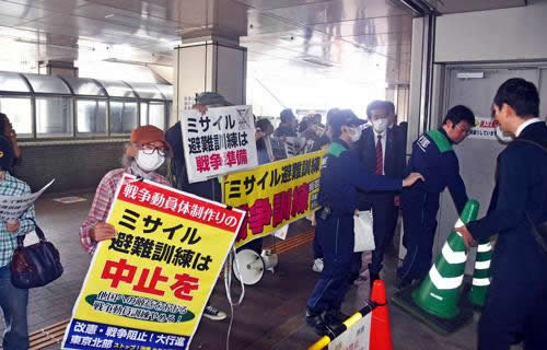 住民の戦争動員許さない 練馬でミサイル避難訓練に抗議
