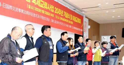 11月12日、民主労総ソウル地域本部の大講堂で「韓日国際交流事業20周年記念式・理念交流会」が開催された。第1部の記念式では、民主労総ソウル本部・イヒョンミ本部長職務代行と動労千葉・関道利委員長のあいさつに続いて韓日双方の参加者が紹介された。韓国からは、ソウル本部に加えて公共運輸労組、保健医療労組、女性委員長、全国鉄道労組、鉄道労組ソウル地方本部、移住労組、公務員労組、金属労組・旭非正規職支会、セジョンホテル労組、星州ソソンリでサード(THAAD=高高度迎撃ミサイルシステム)配備に反対して闘ってきた仲間などが参加。日本からは、動労千葉に加えて全学連、港合同、旭非正規職支会支援共闘会議、日教組奈良市、高槻医療福祉労組、群馬合同労組が参加した。ドイツ・鉄道労働者ネットワークの仲間も合流した。