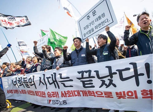 (写真 ユン大統領を倒した韓国・民主労総)