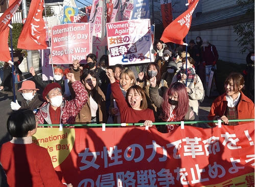 (写真 「女性の力で革命を」婦人デー闘争)