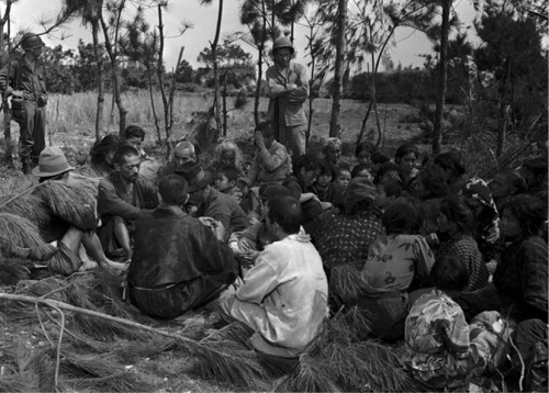 戦後、沖縄は島全体が米軍による軍事監獄と化し、住民は収容所に閉じ込められた。その間に、米軍は今の嘉手納基地など日本軍の基地を接収しただけでなく、自分たちに必要な広大な土地を軍用地として鉄条網で囲い込んだ。収容所から出た住民は住んでいた家がなくなり、難民化した。沖縄は本土と切り離され、1946年の国会議員選挙も日本国憲法も、沖縄人民を排除したものだった。