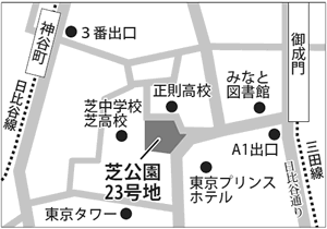 (東京都港区芝公園3―4、都営三田線「御成門駅」A1出口より徒歩7分、東京メトロ日比谷線「神谷町駅」3番出口より徒歩7分)