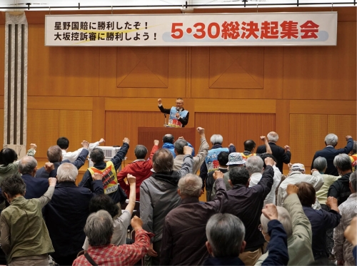 無実の政治犯・星野文昭同志の獄死から6年目、星野国賠訴訟の一審勝利判決をかちとった上で、大坂正明同志の控訴審闘争に勝利する陣形を築くための総決起集会が5月30日、東京・霞が関の弁護士会館講堂クレオに180人を結集して圧倒的にかちとられた。この集会をもって両救援会が合体し、「無実の政治犯 星野さん大坂さん全国救援会」(略称/星野・大坂全国救援会)が発足した。