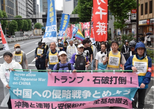 石破政権への怒りは燃え広がっています。「挙国一致」の戦争国会、崩壊を深める政治支配そのものに対する怒りです。青年層が根底的変革を求めて動き出しています。この怒りを真に解き放つのは米日の中国侵略戦争阻止の真っ向からの訴えであり、戦争と生活破壊の元凶である帝国主義打倒、この立場を貫く荒々しい反戦デモの登場です。