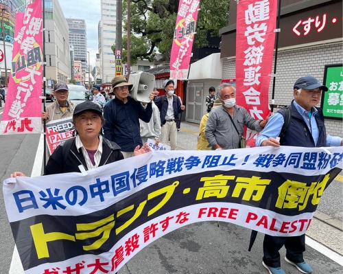 (写真 再びの中国・アジア侵略を許さない決意で、トランプ・高市打倒を訴えてデモに立つ大行進九州【10月25日 福岡市】)