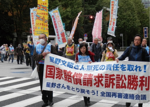 星野国賠控訴審の第1回裁判が10月22日、東京高裁第23民事部(古谷恭一郎裁判長)で開かれた。70人の仲間が昼の霞が関デモから裁判所前街宣、裁判の傍聴、さらに弁護士会館での報告会まで闘いぬいた。