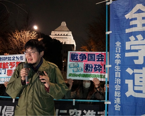 最後に全学連の渡辺祥英書記次長が300万学生を代表して決意表明。帝国主義の言う「安全保障環境の悪化」を生み出しているのはトランプ・高市ら帝国主義の側であることを明らかにし、昨年12月3日に韓国で、ユンソンニョル大統領(当時)のクーデターを粉砕したような闘いを日本でもやろうと呼びかけた。