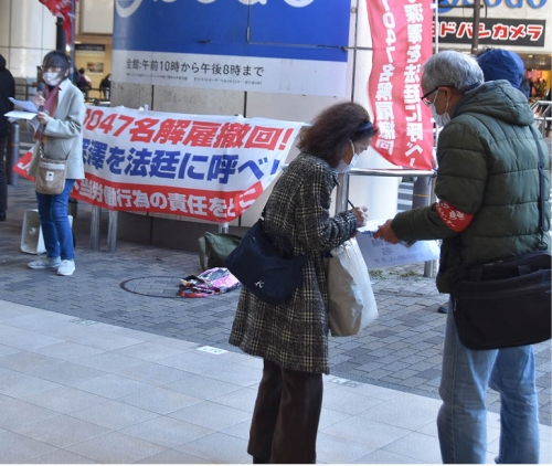 (写真 動労千葉を支援する会は動労千葉の旗開きに先立ち国鉄解雇撤回の街宣を行った【1月10日 千葉市】)