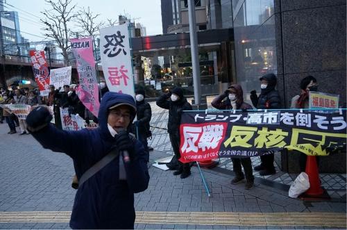 東電本社前では、改憲・戦争阻止!大行進東京とすべての原発いますぐなくそう全国会議(NAZEN)東京が呼びかけ東電を徹底弾劾した。NAZEN事務局長の織田陽介さんが、「3・11福島第一原発事故前の約30年前から現在までこの警報のミスが発見されてこなかった。福島原発事故が起きても点検もし直さない。これが東電だ」と弾劾した。さらに「高市政権が各電力会社に『今すぐ原発を稼働しろ』と圧力をかけてきた結果だ。高市政権の高官が昨年末に核武装が必要だと述べた。核武装、核共有そして中国侵略戦争に向かう中で柏崎刈羽原発の再稼働がある」と断罪。そして「トランプはNSSの全面発動としてベネズエラ侵略戦争に踏み切り、中国侵略戦争―世界戦争に打って出ている。これに対応して高市は解散総選挙にかじを切った」「核、原発問題が焦点になっている。福島の健康被害を隠蔽(いんぺい)し、300人以上の子どもが甲状腺の被害を受け闘病生活を送る中で原発を再稼働することなど許してはならない。広島・長崎、ビキニ、チェルノブイリ、福島を繰り返してはならない。中国侵略戦争に参戦し中国人民に核戦争を仕掛けようとする高市と全面的に闘う反原発運動として闘い抜こう」と訴えた。